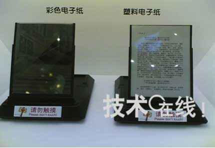 此次三星帶來了獨自開發的塑料和彩色電子紙。塑料電子紙為16階色,彩色電子紙隻能顯示4%的NTSC色域,所用材料為塑料,並將門電路集成到塑料基板上,大小為10.1英寸。塑料電子紙和彩色電子紙的厚度分別為0.7mm和0.5mm。據三星的工作人員介紹,其電子紙均從E ink采購電泳層,然後生產出半成品後,銷售給其他電子書廠商。