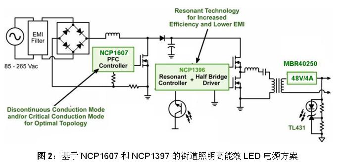 2)基於NCP1607和NCP1397的超高能效大功率LED街燈電源方案