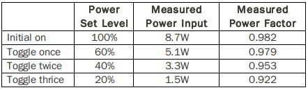 表三、EZDimming四段調光準位的功因