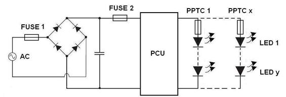 PPTC 是由高分子PTC複合功能材料製成,在常溫下阻抗很低,當電路出現過電流、短路故障、或者高溫時,自複式保險絲會快速地從低電阻轉變為高電阻狀態,利用這種正溫度係數特性,可以將PPTC串聯於LED陣列支電路,實現對過電壓引起LED燈珠的過流進行保護防止燈珠過熱燒毀;也(ye)可(ke)將(jiang)其(qi)安(an)裝(zhuang)在(zai)驅(qu)動(dong)電(dian)源(yuan)內(nei),串(chuan)於(yu)輸(shu)出(chu)回(hui)路(lu)上(shang)對(dui)驅(qu)動(dong)電(dian)源(yuan)進(jin)行(xing)有(you)效(xiao)地(di)過(guo)流(liu)與(yu)超(chao)溫(wen)保(bao)護(hu)。當(dang)引(yin)起(qi)過(guo)載(zai)電(dian)流(liu)的(de)故(gu)障(zhang)排(pai)除(chu)後(hou),自(zi)複(fu)保(bao)險(xian)絲(si)自(zi)動(dong)複(fu)位(wei),無(wu)需(xu)人(ren)工(gong)更(geng)換(huan),可(ke)反(fan)複(fu)使(shi)用(yong),成(cheng)本(ben)更(geng)低(di)。好(hao)利(li)來(lai)(中國)電子科技股份有限公司提供的自複保險絲額定電壓範圍從6V~250V(電壓根據回路裏的最大電壓選取),產品外形尺寸,封裝方式有多種範圍可供選擇。