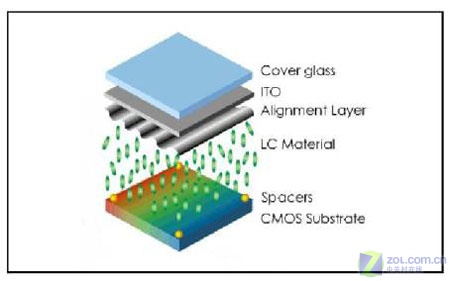 LCOS投影技術最大的特色在於其麵板的下基板采用矽晶圓CMOS基板,由於下基板的材質是單晶矽,擁有良好的電子移動率,而且單晶矽可形成較細的線路,因此比較容易達成高解析度的麵板。