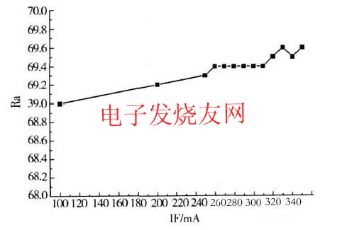 由於藍光LED與$熒(ying)光(guang)粉(fen)組(zu)成(cheng)的(de)白(bai)光(guang)係(xi)統(tong),其(qi)光(guang)譜(pu)中(zhong)缺(que)少(shao)紅(hong)光(guang)成(cheng)分(fen),顯(xian)色(se)指(zhi)數(shu)還(hai)不(bu)理(li)想(xiang),這(zhe)也(ye)是(shi)目(mu)前(qian)業(ye)界(jie)研(yan)究(jiu)的(de)重(zhong)點(dian)課(ke)題(ti)。顯(xian)色(se)指(zhi)數(shu)與(yu)光(guang)譜(pu)成(cheng)分(fen)有(you)關(guan),電(dian)流(liu)增(zeng)加(jia)但(dan)並(bing)不(bu)影(ying)響(xiang)出(chu)光(guang)的(de)光(guang)譜(pu)的(de)分(fen)布(bu),所(suo)以(yi)器(qi)件(jian)的(de)顯(xian)色(se)指(zhi)數(shu)幾(ji)乎(hu)沒(mei)有(you)變(bian)化(hua)。