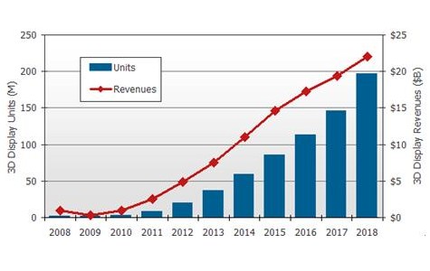 隨著3D電影的日趨風靡,在家電廠商紛紛推出3D液晶電視以後。顯示器也逐漸呈現出了3D趨勢。裸眼3D顯示器由於設計層麵較為複雜,導致單價較高(目前售價比普通顯示器高2倍左右)所以目前應用在顯示器領域的主流3D技術主要是帶眼睛的偏光式3D技術與快門式3D技術兩種。有數據表明,雖然目前3D顯示器所占的市場份額還不算很高,但是隨著產品價格下降以及片源問題的解決,在未來幾年內,3D顯示器在市場占有率方麵會有明顯的上升並最終成為市場的主流。
