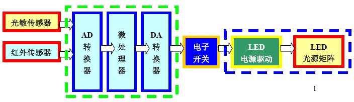 圖1:傳感器與LED燈具係統框圖