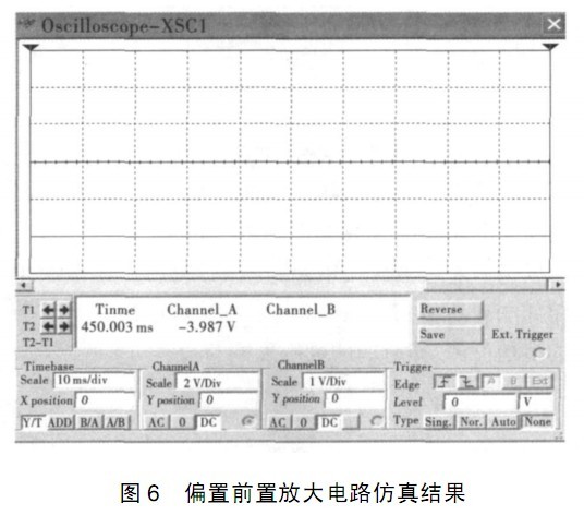 該放大電路經過仿真以後從波形中可以觀察到輸出電壓被拉低到- 4 V 左右, 實現了合理設置靜態工作點的目的;