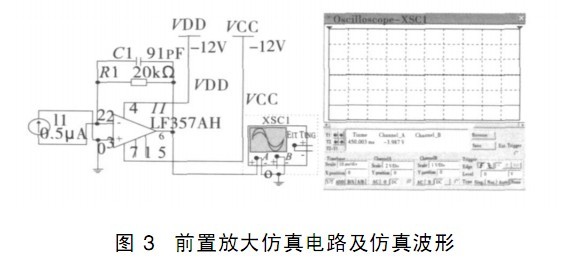 (2)設計合理的通頻帶; 通過電容 Cs 與反饋電阻Rf 的並聯, 構成低通濾波電路,其上限截止頻率為1/ 2%:Cs:Rf 。上限截止頻率越小,信號輸出信噪比越好;但較小的上限截止頻率會使信號產生頻率失真,具體使用時要根據實際情況調試而定;
