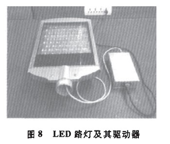 自動斷開,整個控製電路工作,從而減少恒壓電源的輸出,當溫度降低到48℃時,溫度繼電器自動閉合,並使電源正常輸出。經過測試,得出驅動器Vo端與Trim端之間連接的總電阻值尺與驅動器輸出電壓Uo之間的關係,見表2。可以看出:隨著電阻的增加,輸出電壓呈減小趨勢。當溫度達到60℃時,圖7控製電路中溫度繼電器Kt斷開,此時,隻要電阻匹配得當,我們便可以得到設定的輸出電壓。各阻值計算方法同上,在此不作具體計算。3試製驅動器實測結果本項研究進行了大功率LED路燈和LED投射燈及驅動器的研製工作。圖8為LED路燈樣燈及其恒流驅動器,燈體采用一體化設計,測得常溫輸入驅動器的交流電流為270mA,燈長時間運行狀況良好,其總光通量為3 408 lm,在控溫作用時,輸出電流減小為常溫的87%。圖9為LED投射燈樣燈及其恒壓驅動器,測得常溫下輸入驅動器的交流電流為140mA,總光通量為1 011 lm,在控溫作用時,電壓減小為常溫的90%。