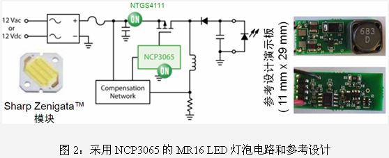 在中低功率LED照明應用方麵,MR16dengpaohenyoudianxingxing,qishejitiaozhanzaiyuzaibutongjiaoliudianyatiaojianxiatigongjiaopingtandeshuchudianliu,qiezaibutongzhiliutiaojianxiatigongchusedenengxiao。ansenmeibandaotidejiangya-升壓型NCP3065開關穩壓器采用針對AC-DC轉換的橋式整流器,具有寬輸入和輸出工作電壓、穩定的輸出電流。NCP3065可配置為降壓-升壓滿足輸入電壓與輸出電壓有交疊的要求,並有開路和短路LED保護功能,可通過12 Vac電子變壓器/牆壁調光器調光。NCP3065的內部參考電壓微調至2%,從而在即便是輸入電壓、LED正向電壓和電感容限的寬變化範圍下,都能提供極精確穩定的電流。