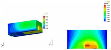 圖6.水平散熱結構LED熱模擬溫度分布圖