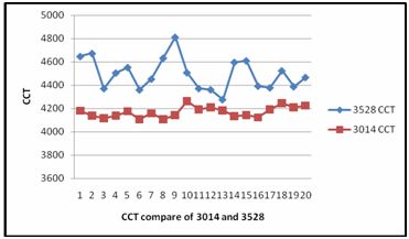 初始參數測試結果表明,在20mA電流驅動下,3014LED的光通量比3528高,且其CCT集中度比3528LED好。另3014一般在30mA電流下驅動使用,其光通量達到10~11Lm;如上節熱模擬顯示,3528LED散熱效果遠不如3014LED,故其在大電流驅動下,光通量必定會嚴重受到過高熱量的影響。因此相比水平散熱LED,垂直散熱LED具有不可比擬的優勢。