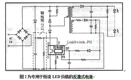 應該說如今有多種類型控製器可以構建恒流LED驅動電源-LED負載的反激式電源。在此僅以集成多項控製器LinkSwitch.-PH構建的LED驅動器為例作分析。