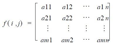 假設該數組的元素為:aij , 表示某矩形區域單位麵積的照度值。並假設該數組為: m ×n (即m行n 列) 。f ( i , j) 稱為照度矩陣: