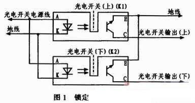 加鎖狀態下,計算機檢測光電開關輸出(上)信號,若為低電平,則輸出加鎖控製信號到電機,控製凸輪向上運動,擋片(圖1中虛線所示)隨凸輪運動逐漸擋住光電開關(上)發光部分,K1停止工作,光電開關輸出(上)變為高電平,即加鎖到位信號,控製計算機接收高電平並撤銷對電機的控製信號;解鎖狀態下,計算機檢測光電開關輸出(下)信號,若為低電平,則輸出解鎖控製信號到電機,控製凸輪向下運動,擋片隨凸輪運動逐漸擋住光電開關(下)發光部分,K2停止工作,光電開關輸出(下)變為高電平,即解鎖到位信號,控製計算機接收高電平並撤銷對電機的控製信號。