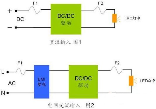 麵對LEDzhaomingdezhongduoyingyonglingyu,youyushichangbingmeiyouxingchengtongyideguifan,cunzaiduozhongduoyangdequdongjiejuefangan,danshiwanbianbuliqizhong,congguoliubaohudejiaodulaikandatishanggenjudengtideshurudianliulaikeyifenwei:直流輸入和電網交流輸入兩種最基本的類型,兩種類型的主要區別在於驅動電源是否有交流轉直流的模塊。當然市場上也有很多電阻、阻容降壓等低成本解決方案,沒有EMI整流和恒流驅動的模塊,但是由於初級端保險絲的選用要求與圖2是一致,在此歸入第二種類型。