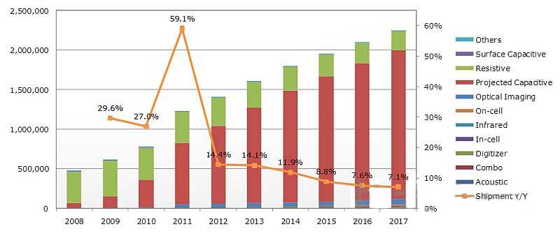 - 智能手機迅猛增長帶動觸摸麵板市場迅速擴大