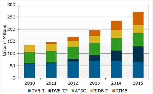 - 2015年DVB-T2地麵數字電視出貨量將達6千4百70萬台