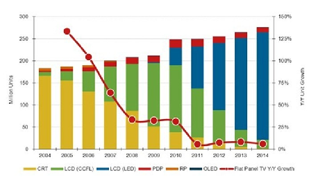 - 具LED背光和3D等性能的液晶電視持續成長