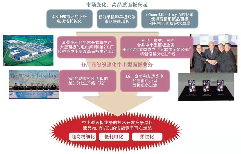強化中小型麵板業務的麵板廠商越來越多,這樣不但能降低智能手機和平板終端麵板的成本,提高附加值的技術開發速度也會加快。