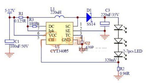 CYT34065是在CYT34063基礎上,改進設計而派生的LED驅動器。CYT34065繼續保留CYT34063優秀的特點外,並且還能高效率的驅動LED。CYT34065是專門為LED大功率而設計的一款直流驅動器,可選擇升壓、或降壓應用,最大輸出典型值1A,效率高達85%以上。 蓄電池直流應用設計場所中CYT34065有著較高的性價比,高可靠性、穩定性高,恒流效果極佳。