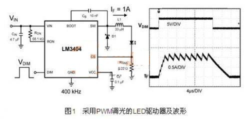 無論LED是經由降壓、升壓、降壓/shengyahuoxianxingwenyaqiqudong,lianjiemeiyigequdongdianluzuichangjiandexianchengjiushixuyaokongzhiguangdeshuchu。xianjinjinyouhenshaoshudeyingyongzhixuyaokaiheguandejiandangongneng,juedaduoshudouxuyaocong0~100%去微調亮度。目前,針對亮度控製方麵,主要的兩種解決方案為線性調節LED的電流(模擬調光)或在肉眼無法察覺的高頻下,讓驅動電流從0到目標電流值之間來回切換(數字調光)。利用脈衝寬度調變(PWM)來設定循環和工作周期可能是實現數字調光的最簡單的方法,原因是相同的技術可以用來控製大部分的開關轉換器。