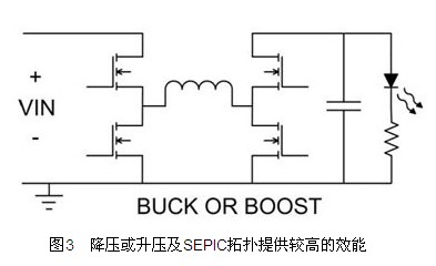 ruguoshuruyushuchudianyajihuxiangtong,zecidianlusuoyongyoudeyoulitiaojian,jiushikaiguanyudiangandianliujihudengyushuchudianliu,dianganlianbodianliuyehuiyoujiaoshaodeqingxiang。jishicidianluzhongyousigegonglvkaiguan,tongchangrengyouxianzhudexiaonengzengjinxianxiang,zheshidianchiyingyongdeguanjiansuozai。tu3所顯示的SEPIC拓撲所需的FET較少,但是需要更多被動組件。SEPIC拓撲的優勢,在於簡易的接地參考FET及控製電路。此外,雙通道電感可以結合為單耦合電感,節省麵積與成本。不過和降壓升壓拓撲一樣,SEPIC拓撲的開關電流較「降壓或升壓」及脈衝輸出電流為高,需要能處理大量RMS電流的電容器。