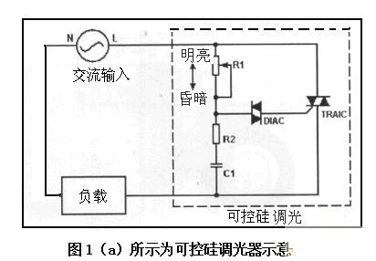 *可控矽調光器(見圖1(a)所示)。它是應用切相原理,減少VRMS來降低普通負載(電阻負載)的功率,工作效率較高性能穩定。