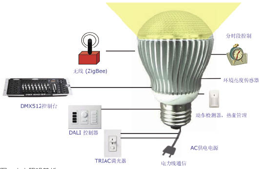 未來照明革新市場潛力巨大,如圖1suoshi。fenshiduankongzhishizhizaibutongshijianduanyoubutongdeliangdu。huanjingliangduchuanganqikeyilinghuoyingduidengjusuochuhuanjingdeliangdu,birutianyindeshihoutianheidebipingchangzao,nameludengjiuhuitiqiandakai。dongzuochuanganjianceqishizhiyewandeshihouruguodengjuzhouweiwurenhuodongshi,huitiaodiliangdu,dangjiancedaoyourenhuodongshi,jiuhuitiaogaoliangdu。lingwai,xiandaizhaomingxuyaoyouduozhongtongxinfangshi,chulewuxianfangshiyiwai,DALI或DMX512等先進的照明專用通信協議使得燈具的管理更加便捷,電力線載波通信(PLC)也是近年來備受關注的方向。