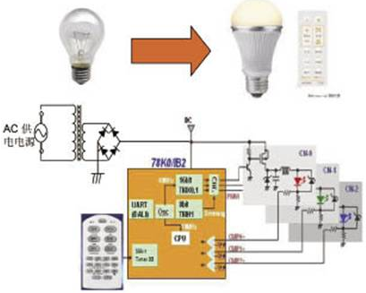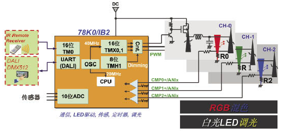78K0/IB2低成本高亮度LED調光(調色)控製的優點: