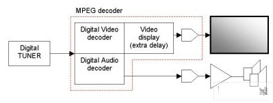 ATSC數字電視廣播的音頻與視頻一起嵌入在MPEG傳送數據流中。數字電視機中的MPEG解碼器同時解碼視頻和音頻(通常是杜比數字),並提供數字音頻輸出(一般是I2S)和視頻輸出。