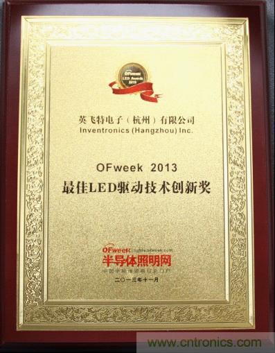 英飛特榮獲OFweek•2013最佳LED驅動技術創新獎