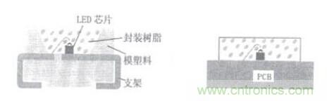 (a)基於導線架的LED封裝 (b)LED芯片貼PEB板