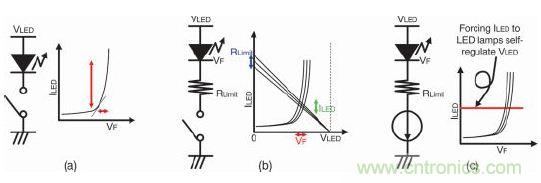 圖 1.對比三種LED驅動電路