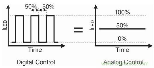 這種ON/OFF 數字控製稱之為脈寬調製(PWM)控製,或者PWM調光。現將PWM控製開關添加至圖2。