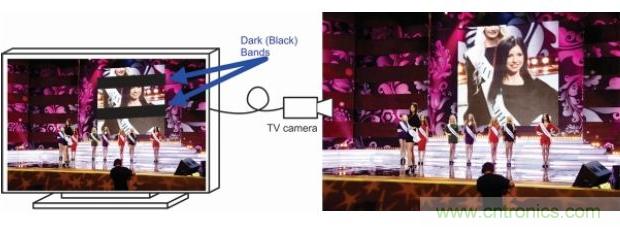 圖 9. 電視攝像機拍攝另一個電視屏幕引起的黑色條帶