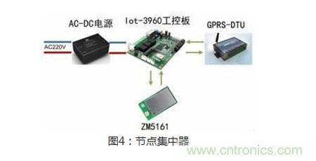 這就是二級終端ZigBee集中器,它由ZM5161模塊,Iot-3960工控板和GPRS-DTU組成,主要用來實現ZigBee信號與GPRS信號的轉換,通過公網傳輸給控製中心。