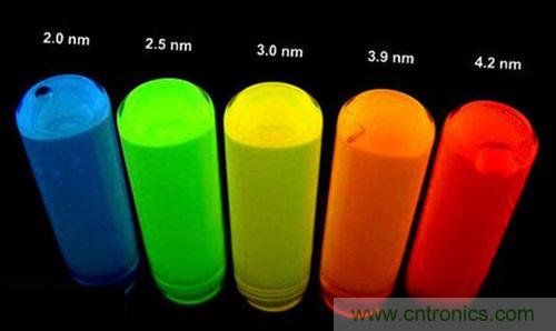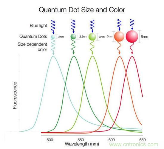 而傳說中的量子點顯示技術就是對背光方案做出變革:所謂的量子點,可以簡單認為是長寬高都在100nm以下的材料(幾個原子的大小),這(zhe)種(zhong)極(ji)小(xiao)的(de)半(ban)導(dao)體(ti)晶(jing)體(ti)在(zai)激(ji)發(fa)後(hou)可(ke)以(yi)發(fa)光(guang),至(zhi)於(yu)究(jiu)竟(jing)是(shi)怎(zen)麼(me)發(fa)光(guang)的(de),那(na)是(shi)科(ke)學(xue)研(yan)究(jiu)範(fan)疇(chou),這(zhe)裏(li)不(bu)做(zuo)討(tao)論(lun)。比(bi)較(jiao)靠(kao)譜(pu)的(de)一(yi)個(ge)結(jie)論(lun)是(shi),量(liang)子(zi)點(dian)的(de)大(da)小(xiao),與(yu)其(qi)所(suo)發(fa)出(chu)光(guang)的(de)能(neng)量(liang)強(qiang)度(du)(波長)成正比。也就是說,量子點的直徑越小,激發後的光波長越短,也就是顏色偏藍,直徑越大則激發後的光波長越長,也就是顏色偏紅。