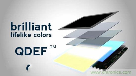 還有一種方案是直接做出含有紅色與綠色量子點的整張薄膜,通過下方的藍色LED激發並穿過之,聯合發出白色背光,這是3M和Nanosys目前主導的一種方案,被稱作QDEF技術(The Quantum Dot Enhancement Film),似乎是業界普遍看好的方案,三星、LG、TCL等都傾向於這樣的方案。