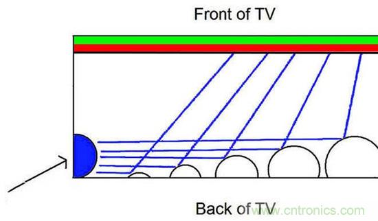 要了解量子點屏幕究竟和OLED屏幕比起來如何,我們還是得先知道量子點技術的本質。傳統的LCD液晶屏幕有背光,這個背光位於相對靠下方的位置,用於照亮整個屏幕。背光有很多種方案,其中一種是背光就用RGB-LED,即藍色、綠色和紅色三種LED。