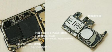 主要的芯片有鎂光4GB LPDDR4顆粒+麒麟960(整合封裝)、旁邊則為東芝64GB UFS 2.0顆粒。而背麵則緊湊地放置了射頻芯片、電源管理芯片等等。