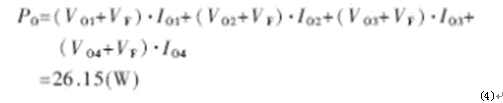 損耗功率PD主要取決於VI、多路輸出最大負載電流之和ΣILOAD以及主功率線圈比N等,其近似計算公式如下: