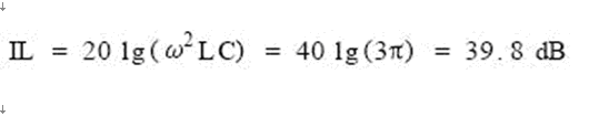 對於小功率的電子設備而言,LmaxCy,max的值通常為100μHμF,這是一個非常小的數值。以單級LC濾波器為例,為簡化分析,用電壓衰減來代替插入損耗,可得此時插入損耗為: