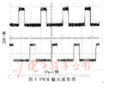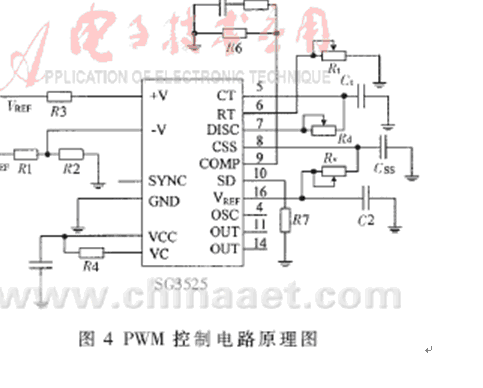 在以IGBT設計的逆變電源中,PWM控製電路是極其重要的組成部分,SG3525脈寬調製型控製器作為SG3524的改進型,更適合於開關器件的雙端DC-DC變換器,它的外圍電路原理圖如圖4所示,輸出波形如圖5所示。