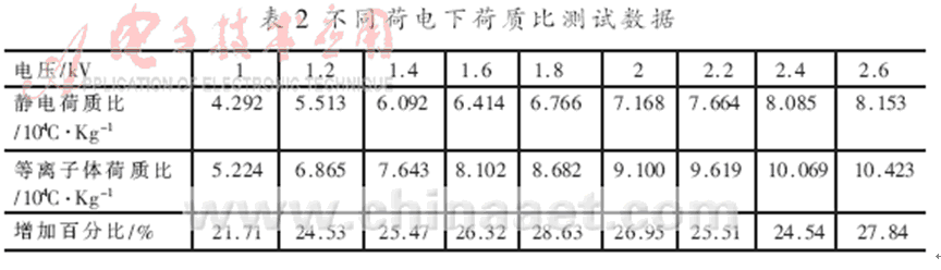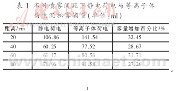 由表1可以看出,由於使用了等離子體荷電噴霧技術,農藥落在植株上的藥量有了明顯的增加,達到了設計要求。由表2可(ke)見(jian),等(deng)離(li)子(zi)體(ti)荷(he)電(dian)與(yu)普(pu)通(tong)靜(jing)電(dian)噴(pen)霧(wu)相(xiang)比(bi),能(neng)在(zai)較(jiao)小(xiao)的(de)放(fang)電(dian)電(dian)壓(ya)下(xia)得(de)到(dao)較(jiao)高(gao)的(de)荷(he)質(zhi)比(bi)。從(cong)而(er)降(jiang)低(di)了(le)農(nong)藥(yao)的(de)使(shi)用(yong)量(liang),也(ye)減(jian)輕(qing)了(le)對(dui)環(huan)境(jing)的(de)汙(wu)染(ran)。