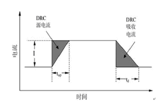 假定DRC電路遠遠快於變換器,則DRC的工作時間取決於DC/DC變換器的電流改變速率Sr,並可分為不同的電流上升速率(Sru)及下降速率(Srd)。現在,我們研究一個負載電流脈衝期間