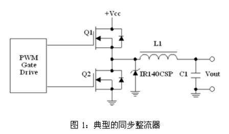 圖1示出了由一個高側MOSFET(Q1)和低側MOSFET(Q2)組成的典型同步整流器,為了實現最佳的同步整流器設計,這兩個MOSFET需要具備不同的特性。一般來說,您可以通過搜尋一個具有最低Qswitch×RDS(ON)性能因數的器件來選擇最佳的Q1 MOSFET。Qswitch被定義為柵-源極電荷的後柵極臨限部分與柵-漏極電荷之和(Qgs2 + Qgd)。相比之下,最佳的Q2 MOSFET必須擁有非常低的RDS(ON)以及良好的Cdv/dt抗幹擾。由於Q2的漏極與轉換器的開關節點相連,因此,它承受著地電位與Vin之間的瞬變電壓。隨著Q1的導通和關斷,漏極電壓會以dV/dt的速率進行變化,該變化將被容性耦合至Q2的柵極,並能夠引起一個足以使MOSFET導通的電壓尖峰,從而產生擊穿電流。因此,必須最大限度地減小Qgd/ Qgs1(柵-漏極電荷/臨限前柵-源極電荷)之比率以降低Cdv/dt導通電位。