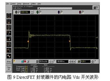 圖9示出的是DirectFETTM 器件對30A電流進行開關操作時的波形。