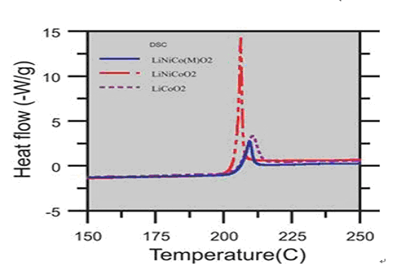 (圖六) 鋰鎳鈷材料經由納米氧化物鍍層表麵處理後之DSC放熱圖
