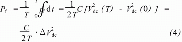 式中:T代表一個開關周期;Vdc(0)、Vdc(T)分別是0時刻和T時刻的直流側電壓;ΔV2dc是0時刻和T時刻的直流側電壓的平方差。綜合式(2)和式(4),有: