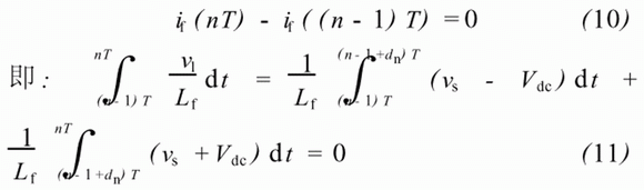 隻要采樣和開關的速度足夠快,在一個開關周期內,我們可以認為vs、Vdc恒定,則式(11)可以化解為: