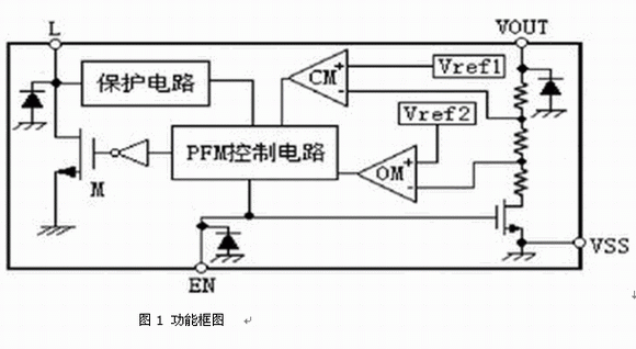 - 采用升壓型PFM控製DC/DC轉換器,結構簡單、功能完備、輸出精度高、功耗低